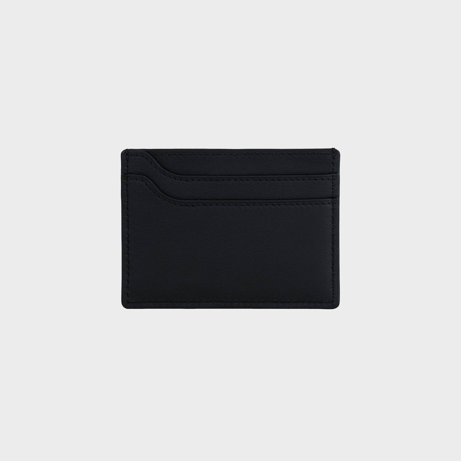 Un tarjetero delgado definido por una sutil onda asimétrica en el frente: un objeto cotidiano refinado hasta lo esencial, hecho en suave piel napa de becerro de plena flor para un tacto elegante y un transporte liviano y compacto.