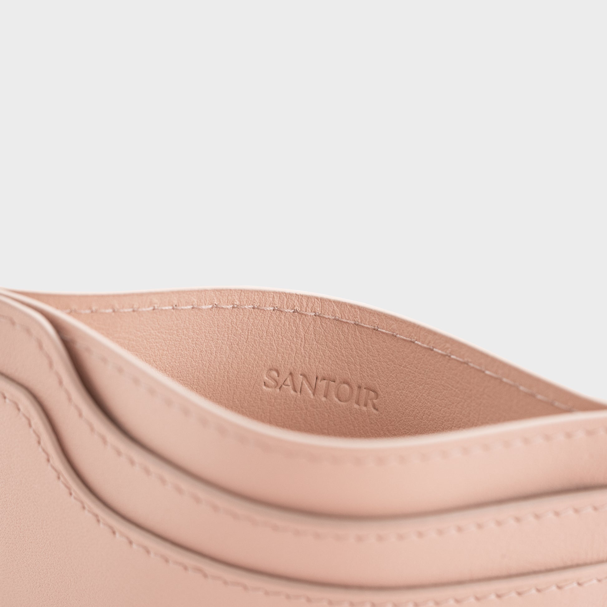 Un tarjetero delgado definido por una sutil onda asimétrica en el frente: un objeto cotidiano refinado hasta lo esencial, hecho en suave piel napa de becerro de plena flor para un tacto elegante y un transporte liviano y compacto.